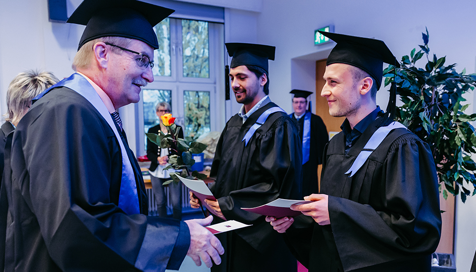 In a festive ceremony at the Faculty of Mechanical Engineering, graduates were handed their degree certificates in festive robes. The graduates experienced a unique tradition that does not exist at any other faculty at the University of Magdeburg - a special ceremony for this important milestone.