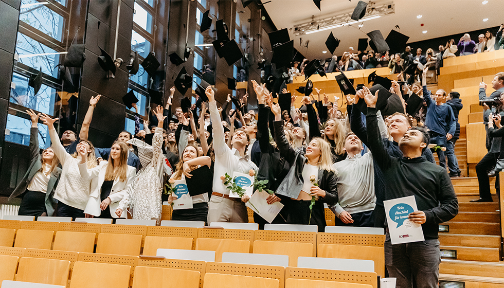 Graduates of the Faculty of Economics and Management traditionally throw their graduation cap in the air (photo: Jana Dünnhaupt | Uni Magdeburg)