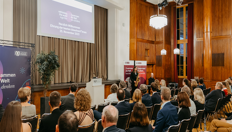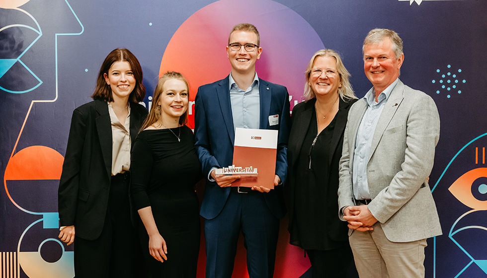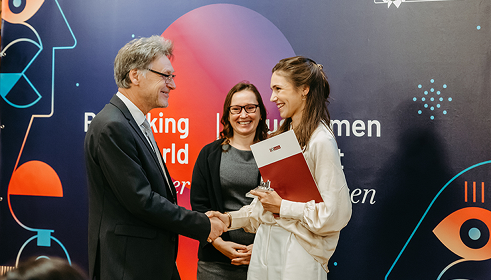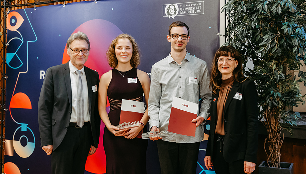 Delight at the award ceremony for the best graduate (photo: Jana Dünnhaupt | Uni Magdeburg)
