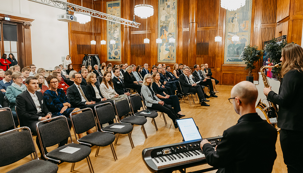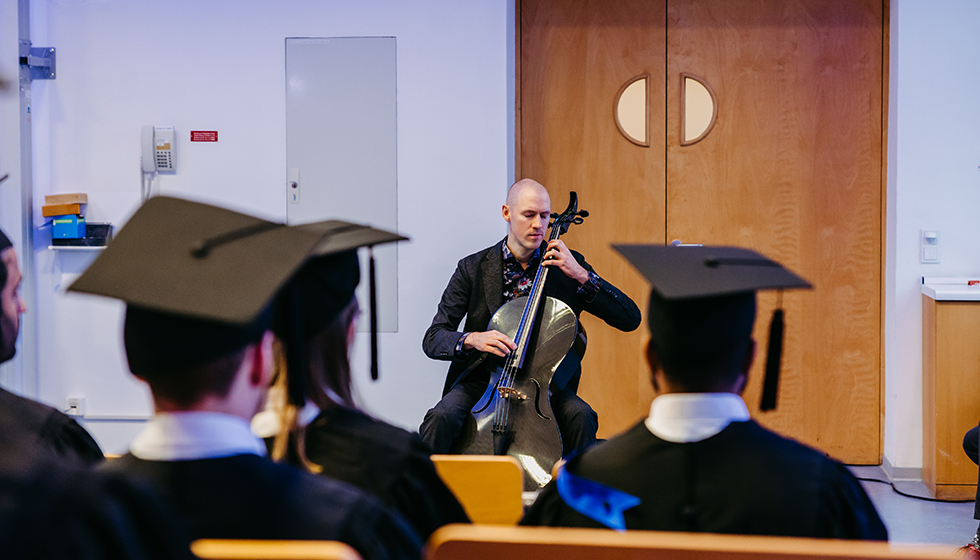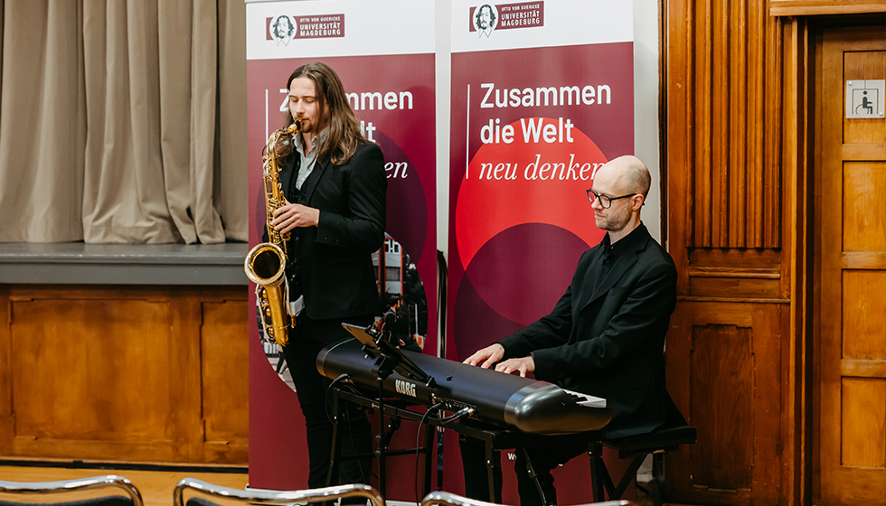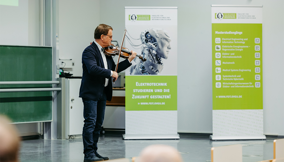 Musical setting for the decentralized graduation ceremony of the Faculty of Electrical Engineering and Information Technology (photo: Jana Dünnhaupt | Uni Magdeburg)