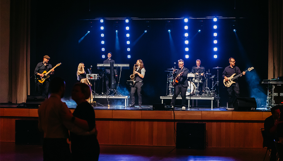 The live band RadioNation created a really good atmosphere on the dance floor at the 2023 graduation ceremony (photo: Anna Friese | Uni Magdeburg)